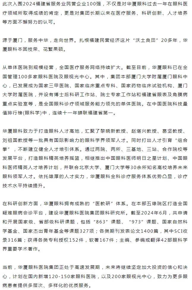 6686体育荣登 “2024福建省服务业民营企业100强” 榜单