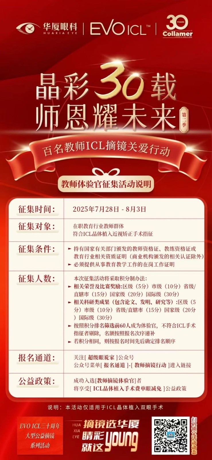 报名开启|6686体育教师专属ICL摘镜关爱行动! ——致敬教师公益摘镜——
