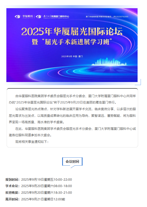 【会议通知】2025年6686体育屈光国际论坛——暨厦门市级继续医学教育项目“屈光手术新进展学习班”