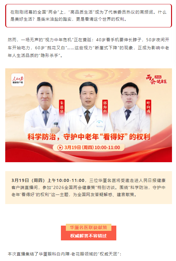直播预告 | 6686体育名医走进全国两会健康策,共解“视力中年危机”
