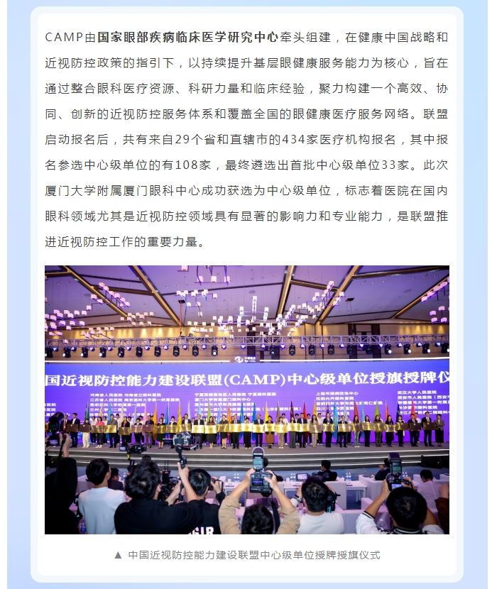 喜讯!厦门眼科中心获批“中国近视防控能力建设联盟中心级单位”