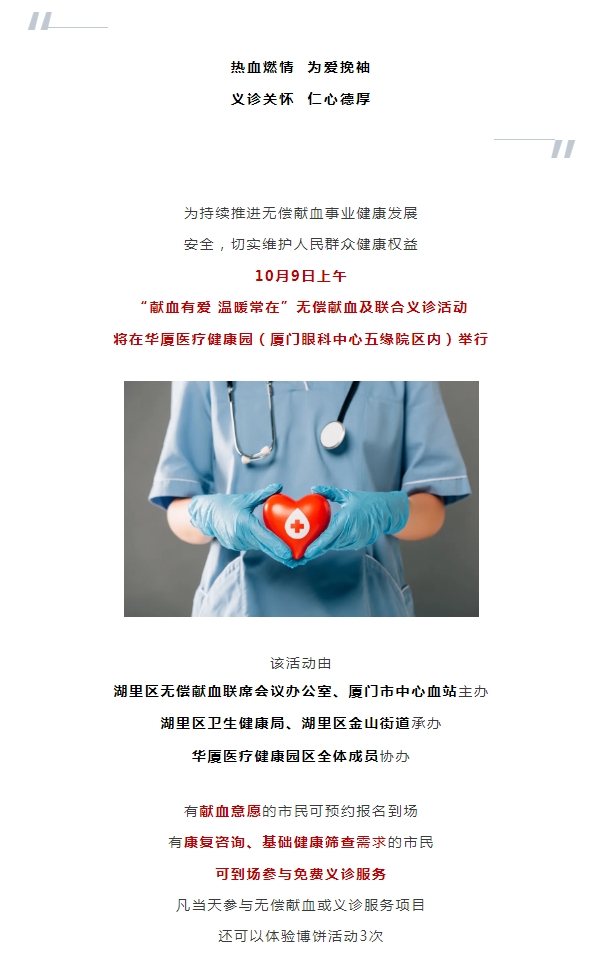 10月9日上午!无偿献血及免费义诊活动将在6686体育医疗健康园举行
