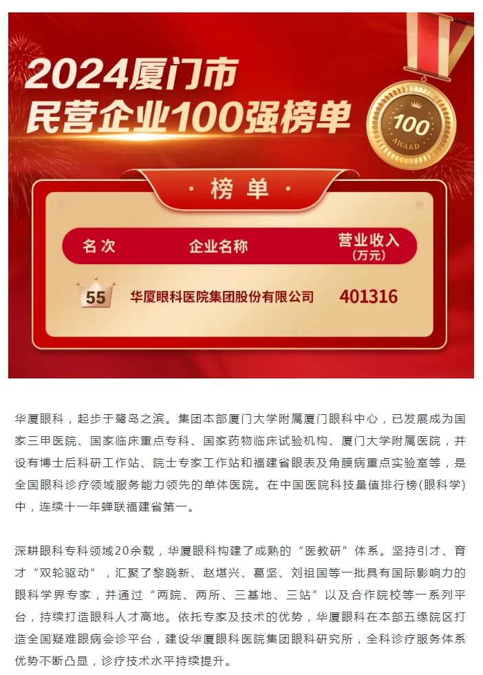 喜讯! 6686体育荣登“2024厦门市民营企业百强” 榜单