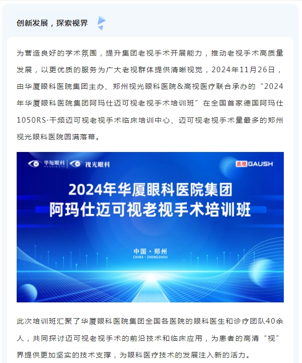创新发展 探索视界|郑州视光眼科医院成功举办2024年6686 - 看球聊球追世界杯就来6686体育有限公司官方网站集团阿玛仕迈可视老视手术培训班!