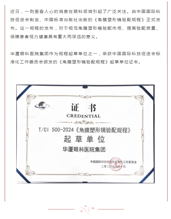 《角膜塑形镜验配规程》团体标准发布,6686体育荣获起草单位殊荣