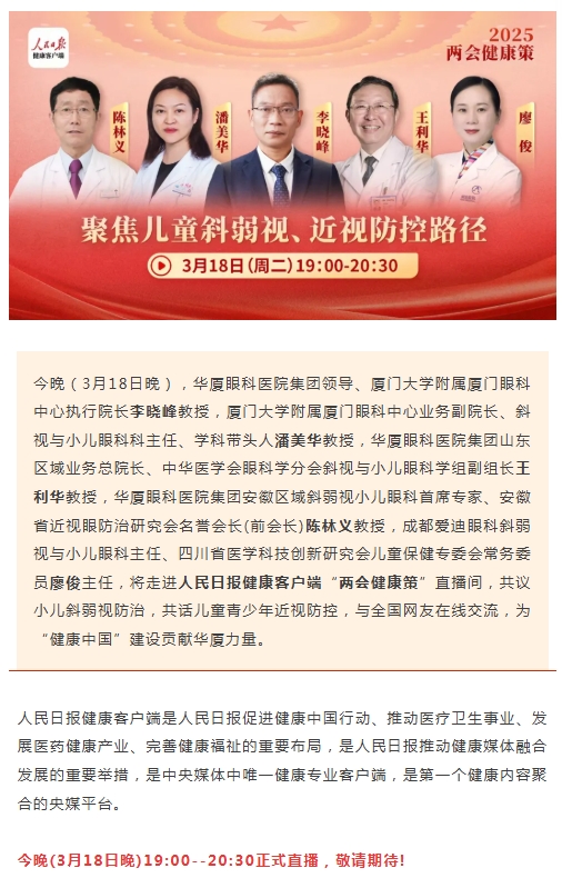 今晚直播!6686体育专家走进人民日报“两会健康策”,共议儿童斜弱视与近视防控路径
