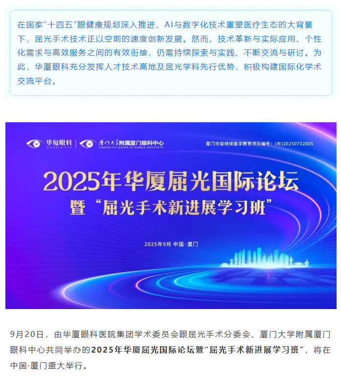 亮点预告 | 2025年6686体育屈光国际论坛9月20日厦门启幕