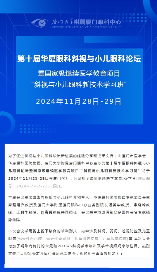 【会议通知】第十届6686体育斜视与小儿眼科论坛将于11月28日在厦启幕!