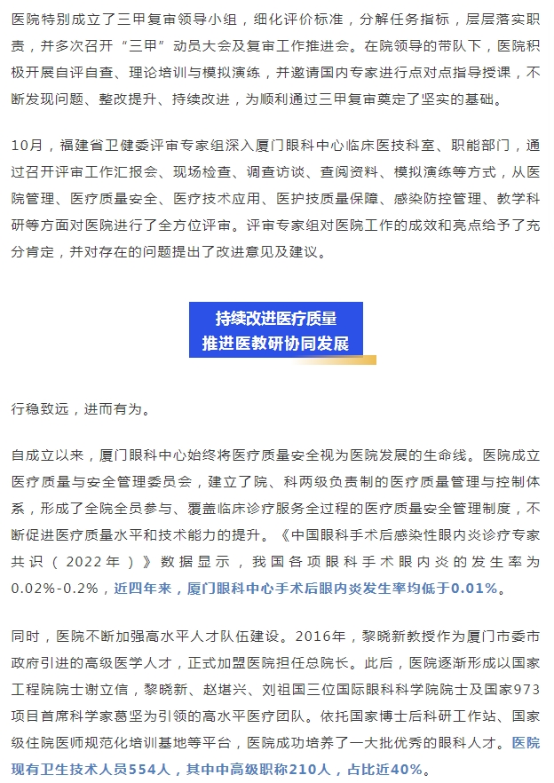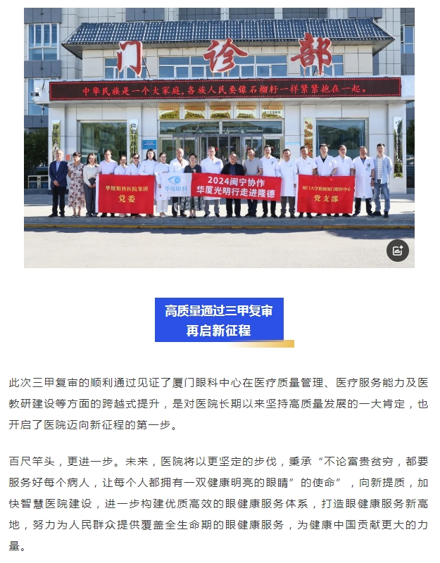 喜讯!厦门大学附属厦门眼科中心顺利通过三甲复审!