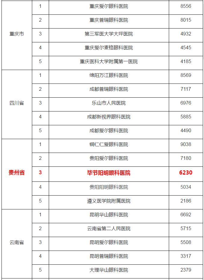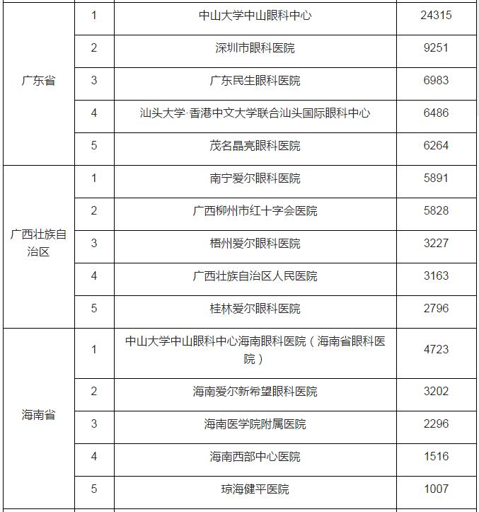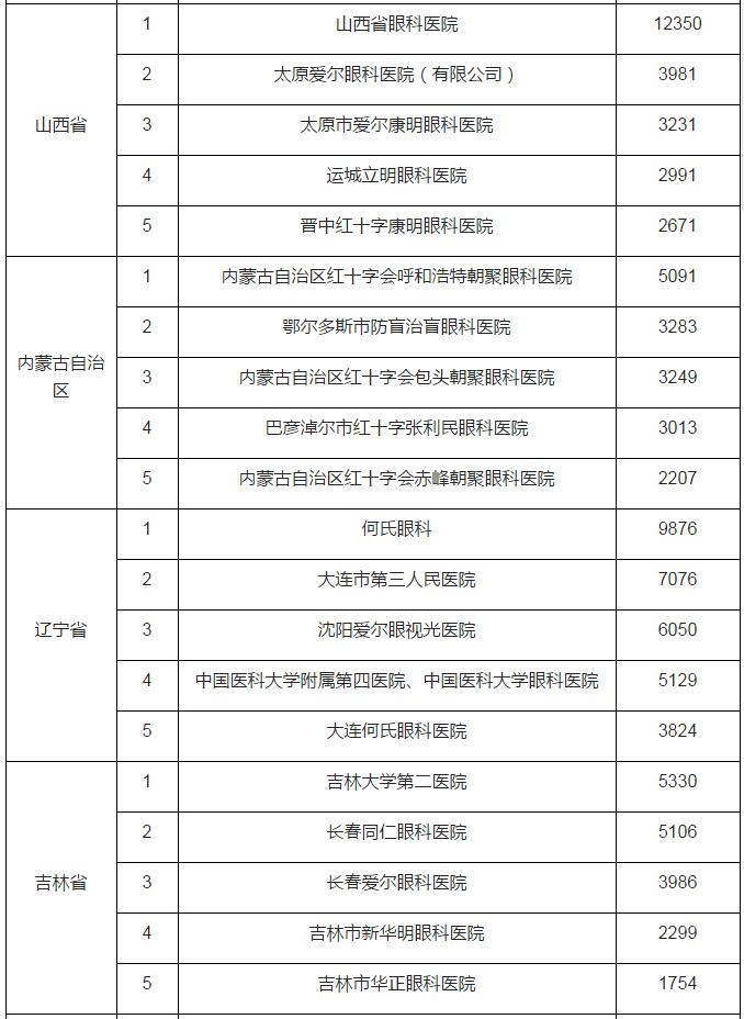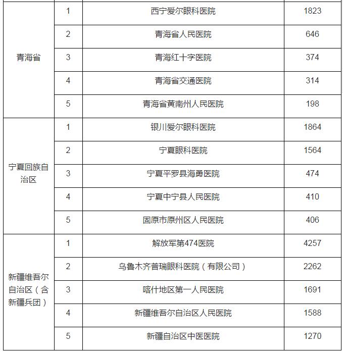 三、2017年各省(区、市)填报手术 数 多的5家医院排名。详见如下: