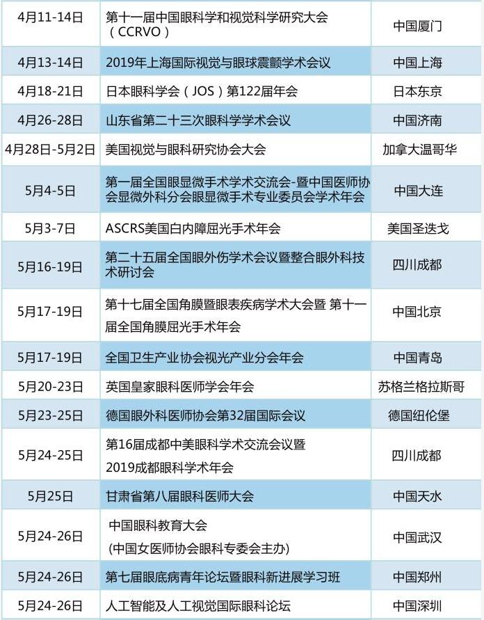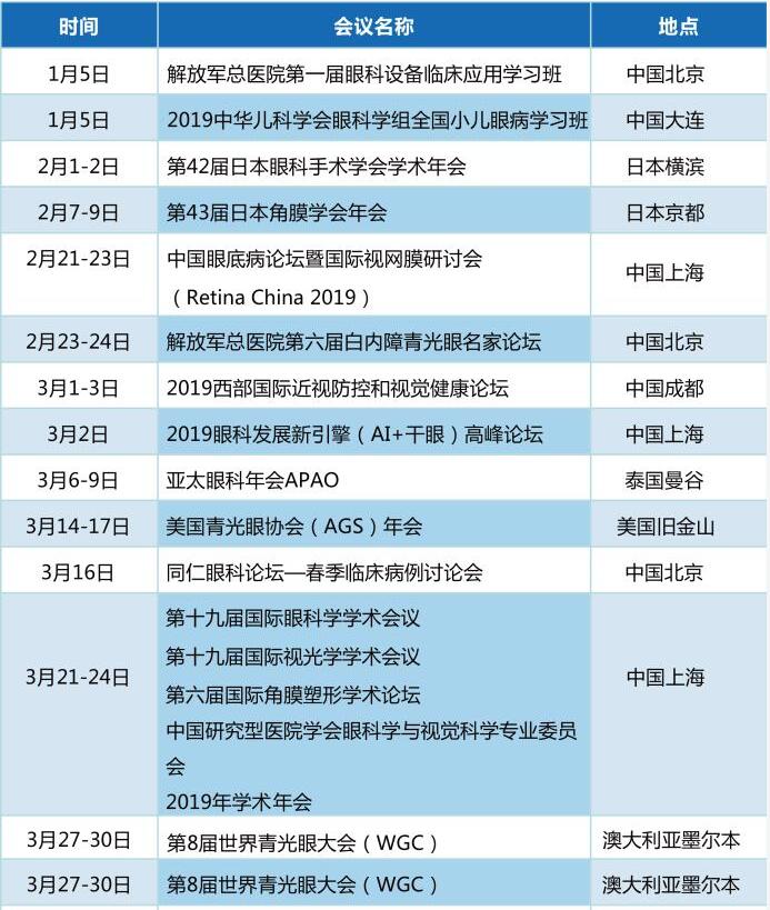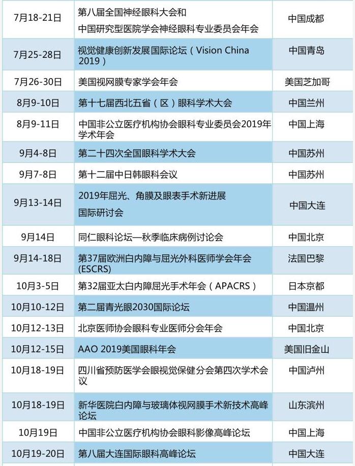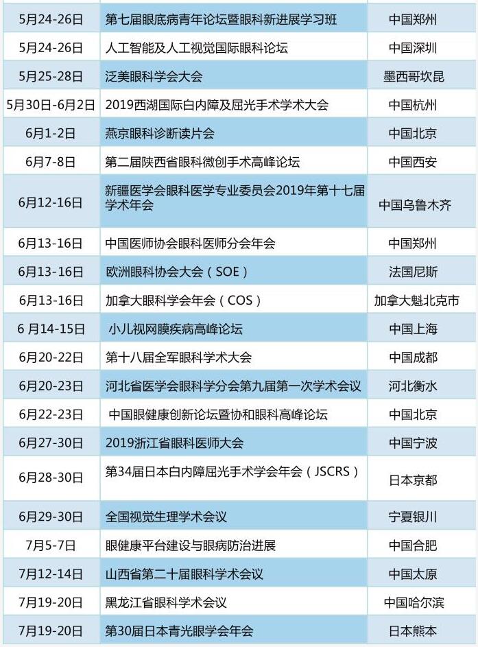 6686体育学术资讯:《眼界》2019年国内外眼科会一览表