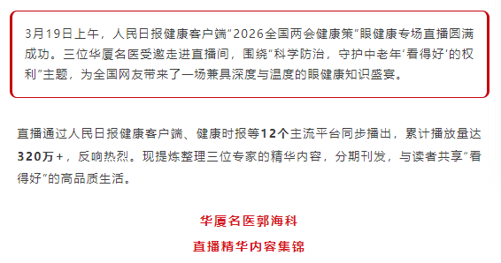 直播预告 | 6686体育名医走进全国两会健康策,共解“视力中年危机”