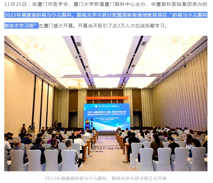 厦门眼科中心:2023年福建省斜视与小儿眼科、眼视光学术研讨班盛大开幕