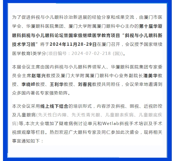 会议通知(第二轮) | 第十届6686体育斜视与小儿眼科论坛