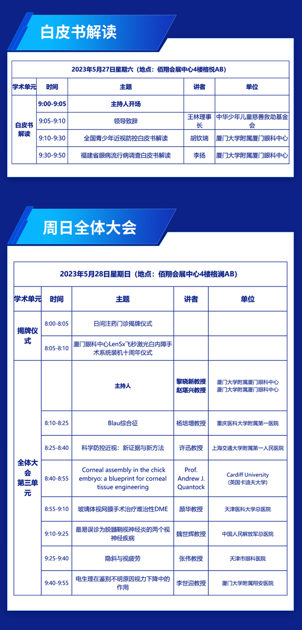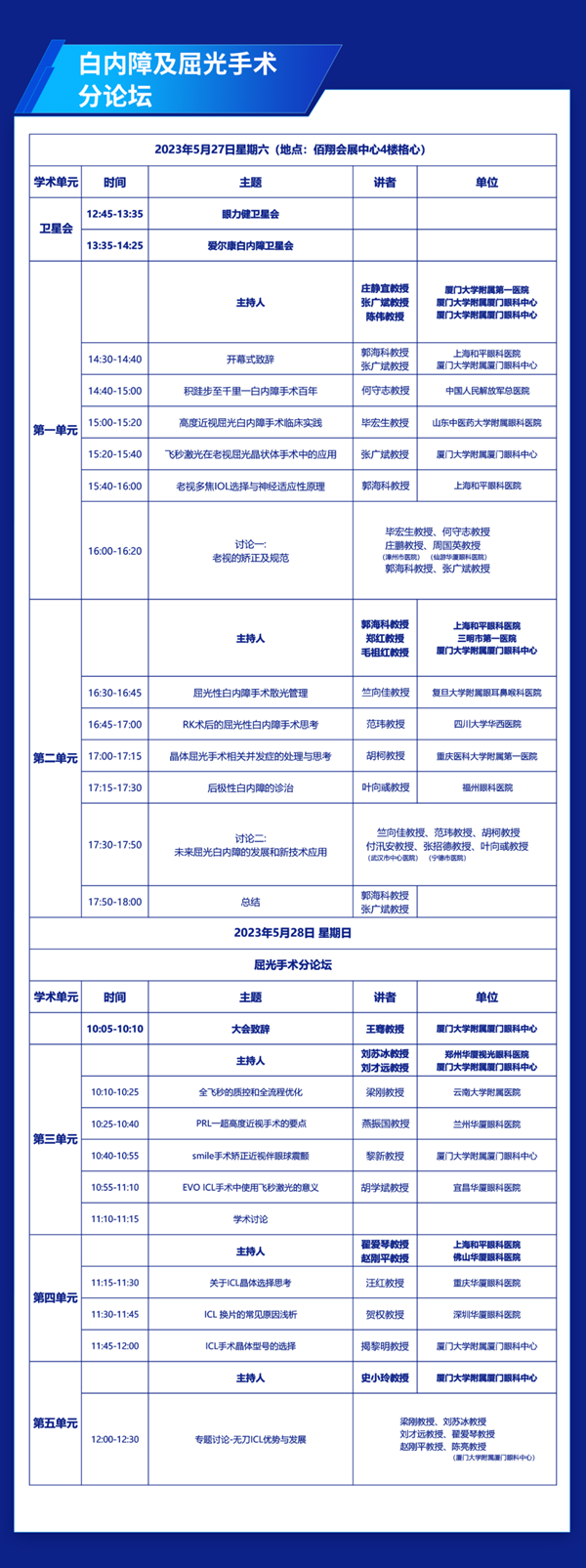二零二三,鹭岛之滨,天高海阔,盛宴将启。第九届6686体育国际论坛将于5月27-28日在厦门佰翔五通会展中心举行。本届论坛十分荣幸地邀请到了黎晓新教授、赵堪兴教授、葛坚教授、孙兴怀教授、刘祖国教授共同担任大会主席,更有谢立信院士、姚克教授、王宁利教授、范先群院士、刘奕志教授、杨培增教授、许迅教授、瞿佳教授(按演讲顺序排序)等近百名国内眼科专家及国际知名眼科专家精彩授课。