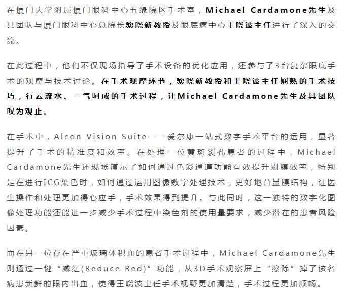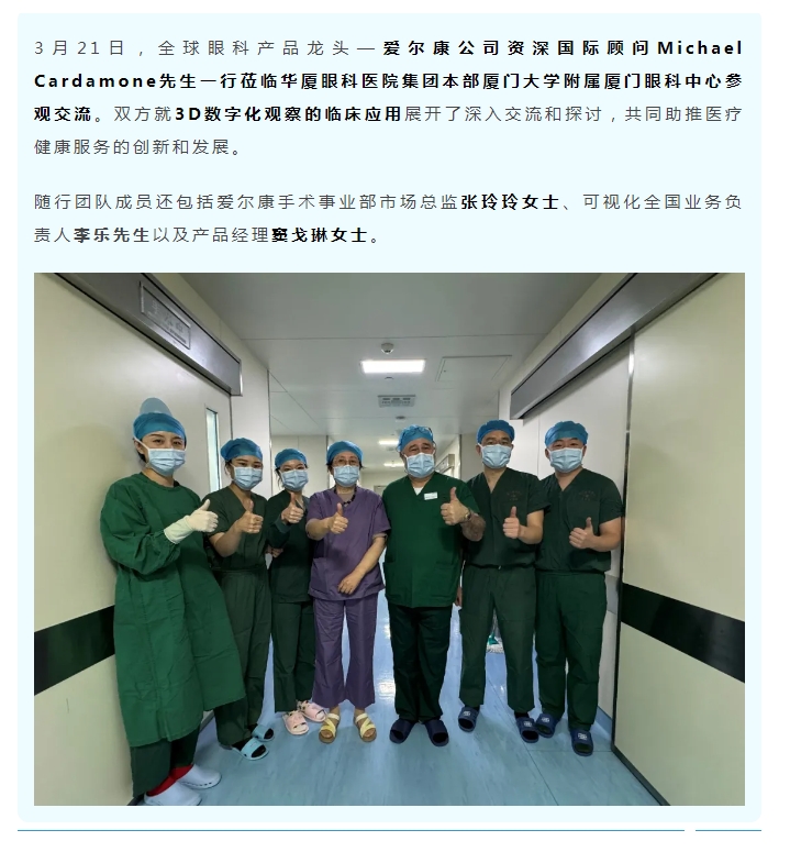 爱尔康资深国际顾问一行参访厦门眼科中心,共同探讨3D数字化观察的临床应用