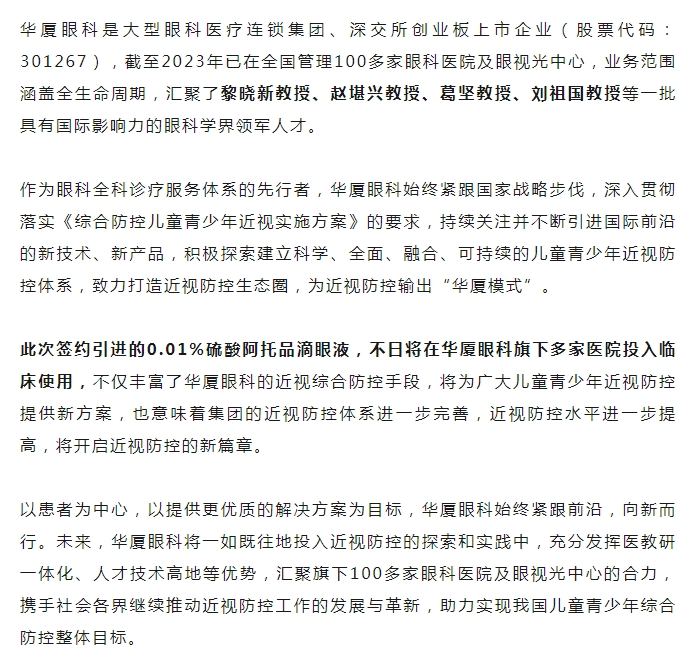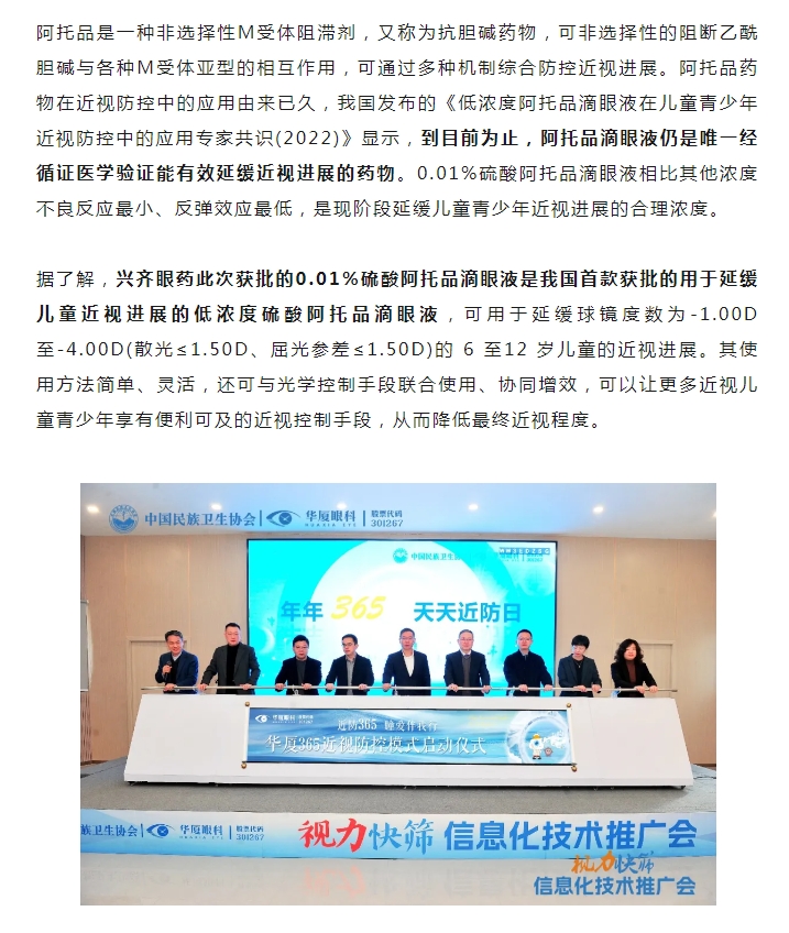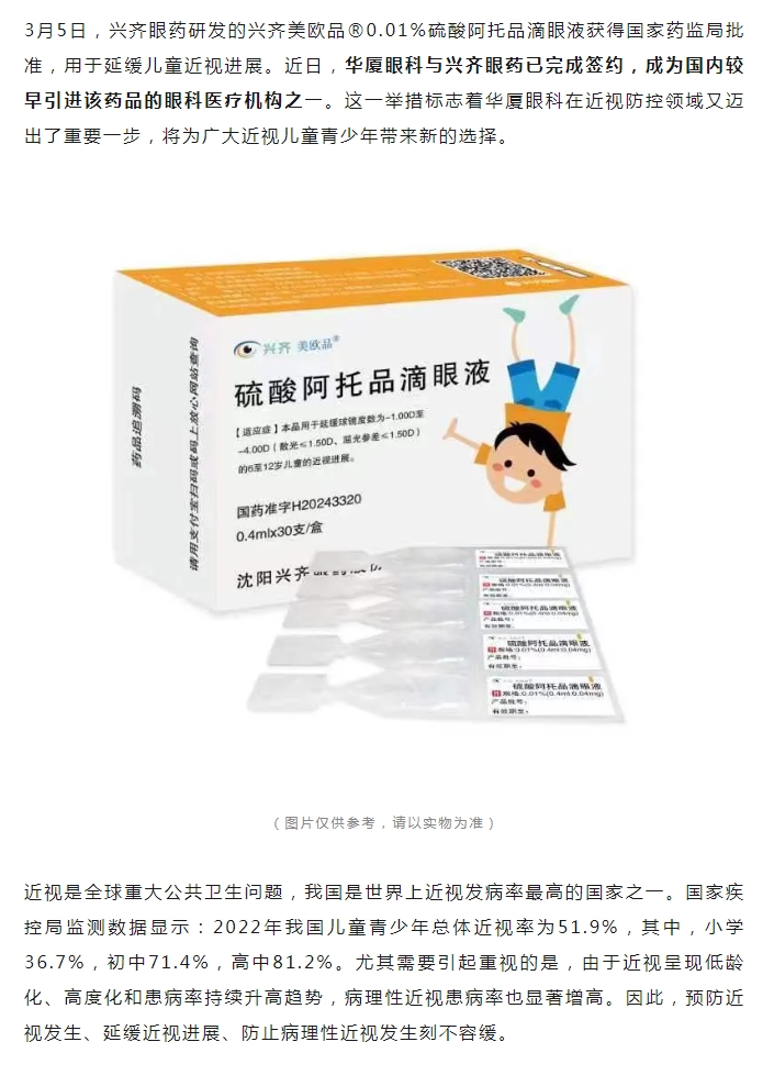 6686体育签约引进国内首款获批的0.01%硫酸阿托品滴眼液