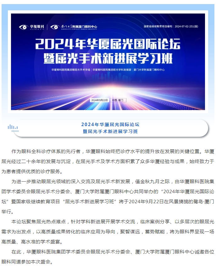 会议通知 | 2024年6686体育屈光国际论坛暨国家级继续教育项目“屈光手术新进展学习班”