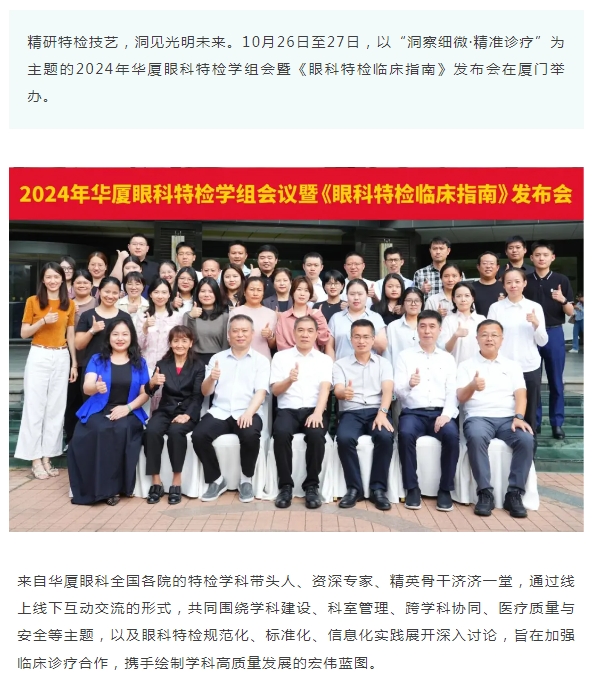 洞察细微·精准诊疗 | 2024年6686体育特检学组会暨《眼科特检临床指南》发布会在厦举办