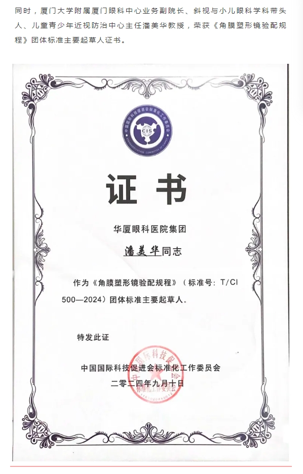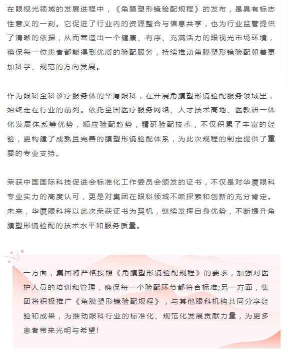 《角膜塑形镜验配规程》团体标准发布,6686体育荣获起草单位殊荣