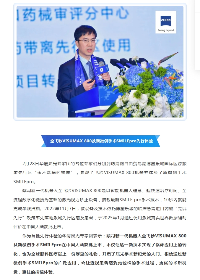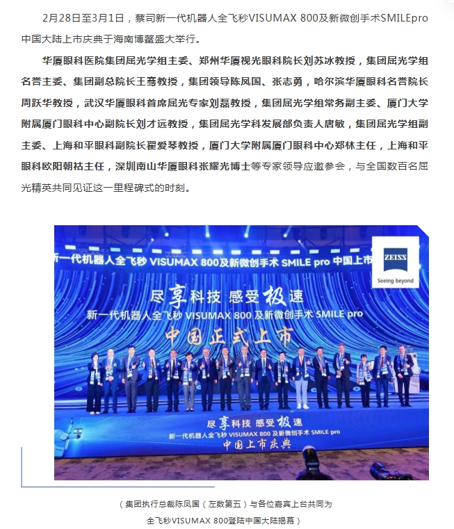 6686体育屈光专家团应邀出席蔡司新一代机器人全飞秒VISUMAX 800及新微创手术SMILEpro中国大陆地区上市庆典