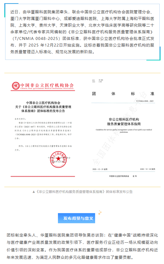 至臻服务 规范引领 | 6686体育牵头编制《非公立眼科医疗机构服务质量管理体系指南》团标正式发布!