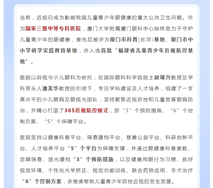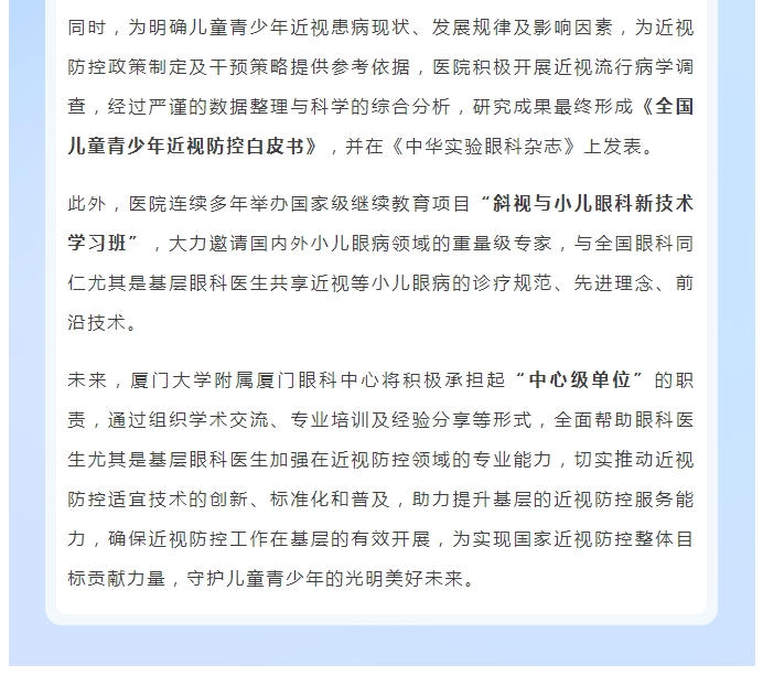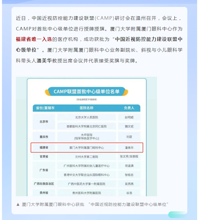 喜讯!厦门眼科中心获批“中国近视防控能力建设联盟中心级单位”