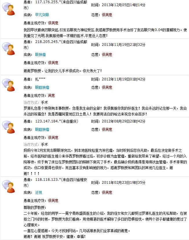 成都6686 - 看球聊球追世界杯就来6686体育有限公司官方网站院长陈晓明教授、业务院长罗清礼教授网上患者评价
